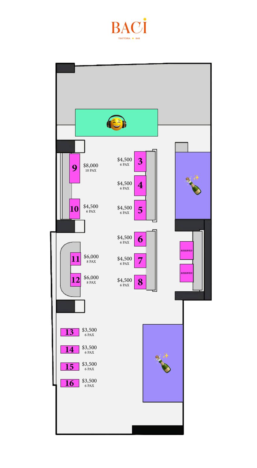 | Table 3–5, 10 | 6 pax | HK$3,800 |